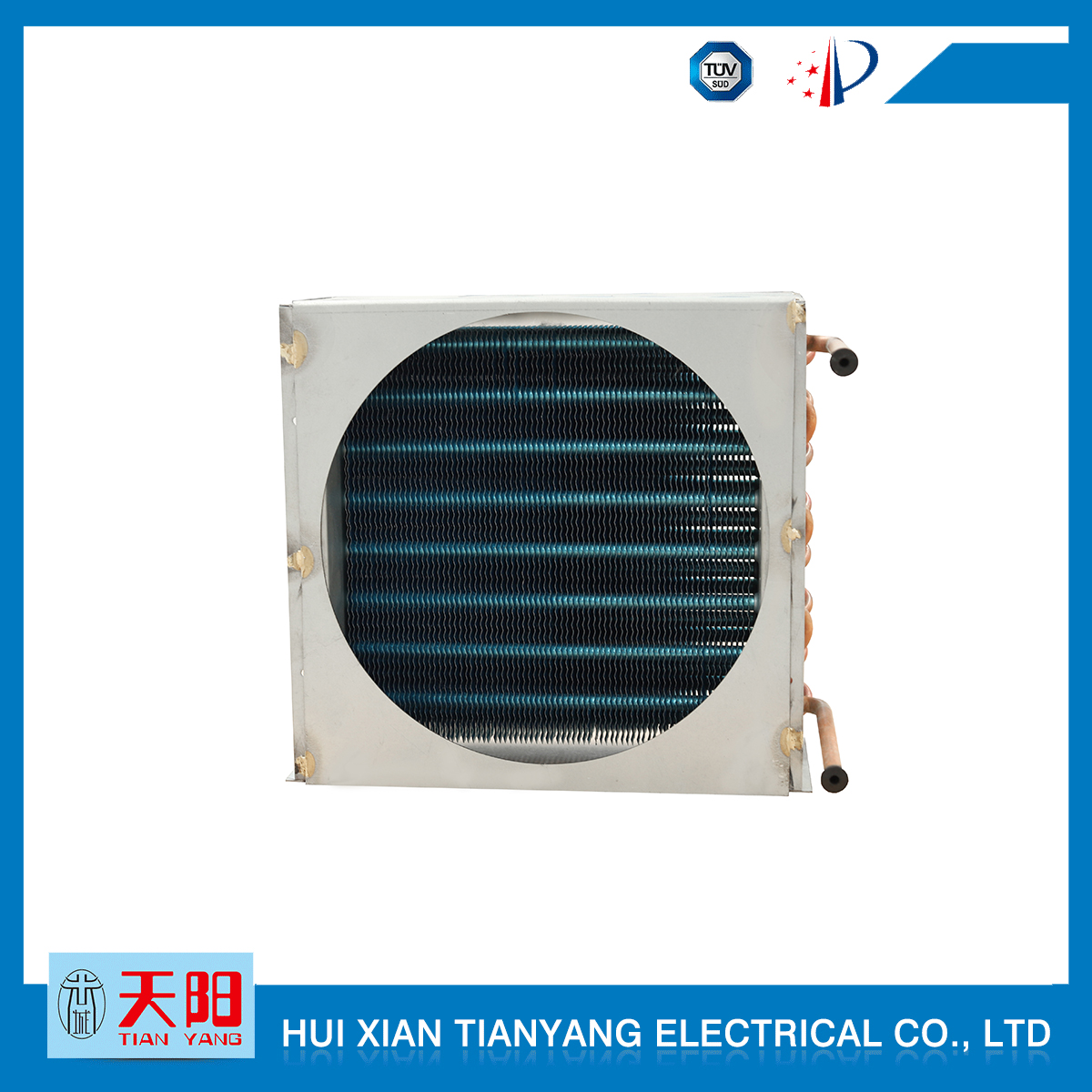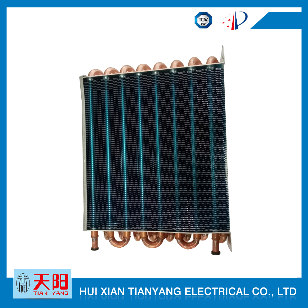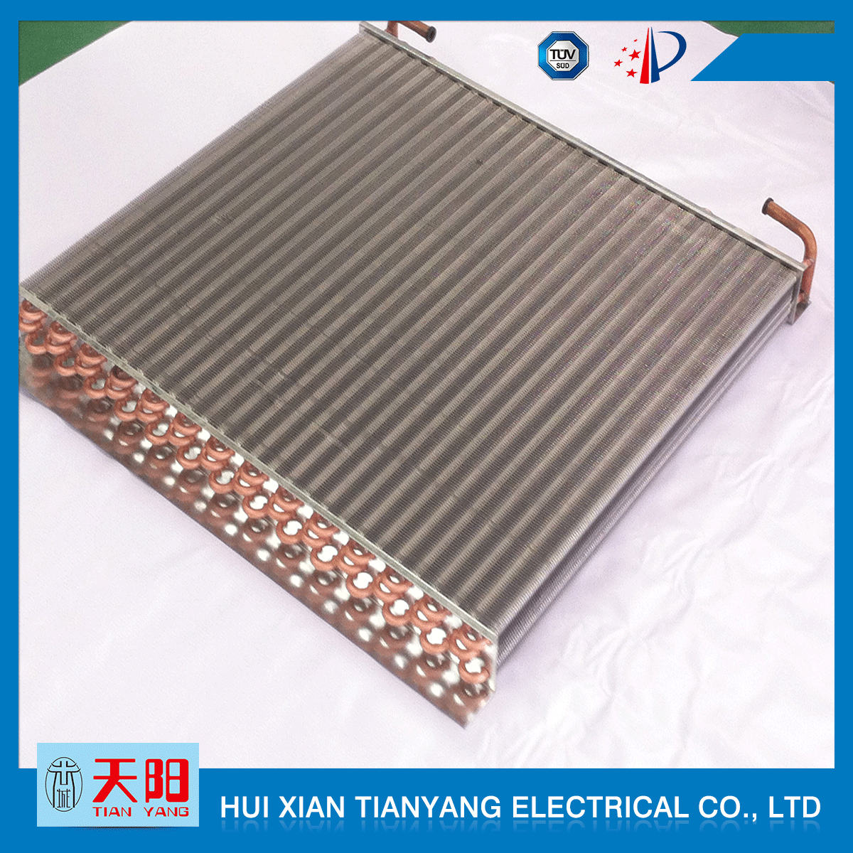 輝縣天陽電器有限責任公司位于肥沃的中原河南省輝縣市學(xué)院路中段工業(yè)集聚區(qū)興業(yè)園3號廠房,以制冷設(shè)備用冷凝器,蒸發(fā)器,熱交換器為主。主要材料為銅管鋁翅片,銅管銅翅片,鋁管鋁翅片。廣泛應(yīng)用于冰箱冰柜,制冷設(shè)備,暖通設(shè)備,空調(diào),自動售貨機,冷干機,超市立風柜,冷藏車,烘干機等產(chǎn)品領(lǐng)域。  公司自1998年成立以來,始終堅持:“科技造就產(chǎn)業(yè)、質(zhì)量成就信譽、誠信鑄就輝煌”的質(zhì)量方針,從產(chǎn)品拓展上堅持“人無我有,人有我優(yōu),人優(yōu)我特的”經(jīng)營理念,25年來,從1998年開始供應(yīng)河南冰熊集團下屬的冷柜廠,制冰機廠各種冷凝器;2003年之后,原冰熊集團的精英志士開始在全國各地發(fā)展,所到之處依托我公司供貨,以致于多家目前已具行業(yè)中佼佼者的公司,從而建立了如凱雪公司,兆邦公司、凌云公司、海寶公司、正雪公司、上海忠云、山東德萊維等幾十余家公司在草創(chuàng)時期的啟蒙供貨商,友好共贏長達十余年,成為我國制冷行業(yè)的供應(yīng)商。以致在2015年初雙匯集團面向社會的招標書中指名要我公司冷凝器、蒸發(fā)器指定產(chǎn)品供應(yīng)商