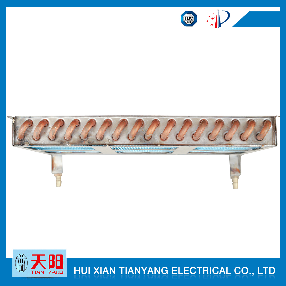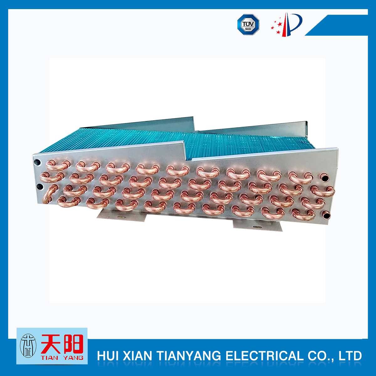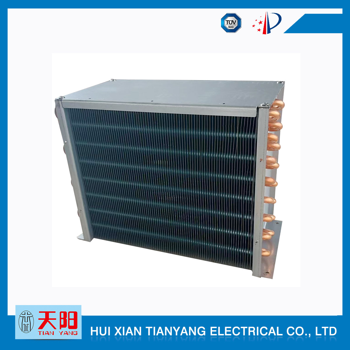 輝縣天陽電器有限責任公司位于肥沃的中原河南省輝縣市學(xué)院路中段工業(yè)集聚區(qū)興業(yè)園3號廠房,以制冷設(shè)備用冷凝器,蒸發(fā)器,熱交換器為主。主要材料為銅管鋁翅片,銅管銅翅片,鋁管鋁翅片。廣泛應(yīng)用于冰箱冰柜,制冷設(shè)備,暖通設(shè)備,空調(diào),自動售貨機,冷干機,超市立風柜,冷藏車,烘干機等產(chǎn)品領(lǐng)域。  公司自1998年成立以來,始終堅持:“科技造就產(chǎn)業(yè)、質(zhì)量成就信譽、誠信鑄就輝煌”的質(zhì)量方針,從產(chǎn)品拓展上堅持“人無我有,人有我優(yōu),人優(yōu)我特的”經(jīng)營理念,25年來,從1998年開始供應(yīng)河南冰熊集團下屬的冷柜廠,制冰機廠各種冷凝器;2003年之后,原冰熊集團的精英志士開始在全國各地發(fā)展,所到之處依托我公司供貨,以致于多家目前已具行業(yè)中佼佼者的公司,從而建立了如凱雪公司,兆邦公司、凌云公司、海寶公司、正雪公司、上海忠云、山東德萊維等幾十余家公司在草創(chuàng)時期的啟蒙供貨商,友好共贏長達十余年,成為我國制冷行業(yè)的供應(yīng)商。以致在2015年初雙匯集團面向社會的招標書中指名要我公司冷凝器、蒸發(fā)器指定產(chǎn)品供應(yīng)商